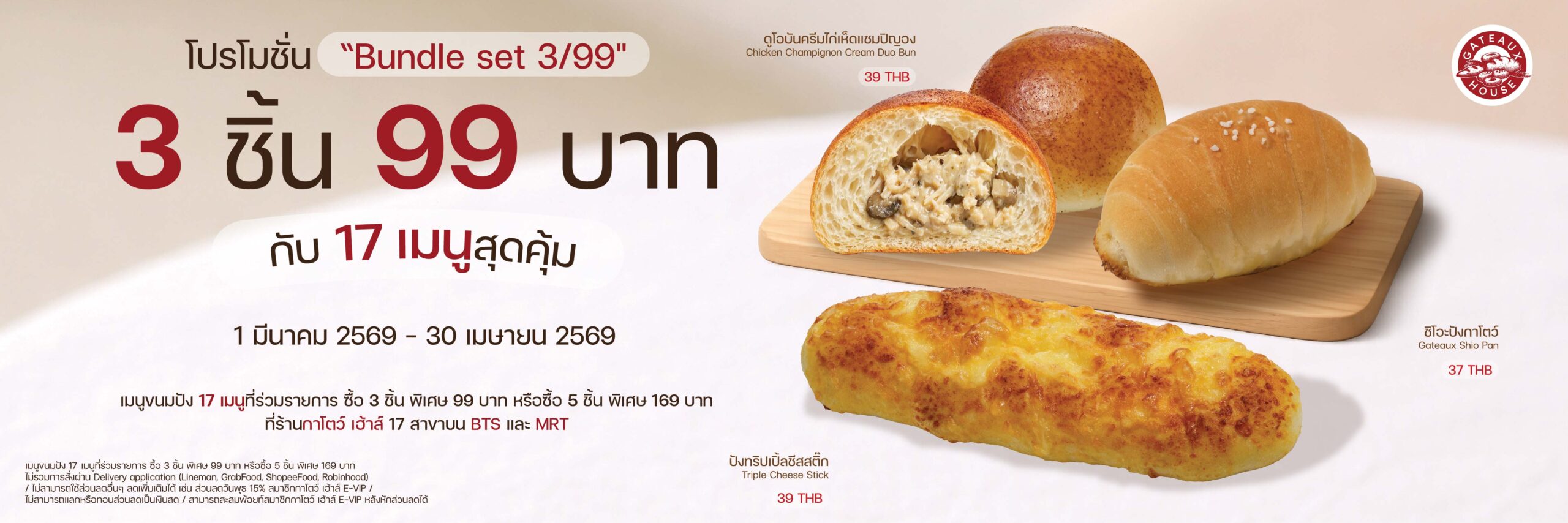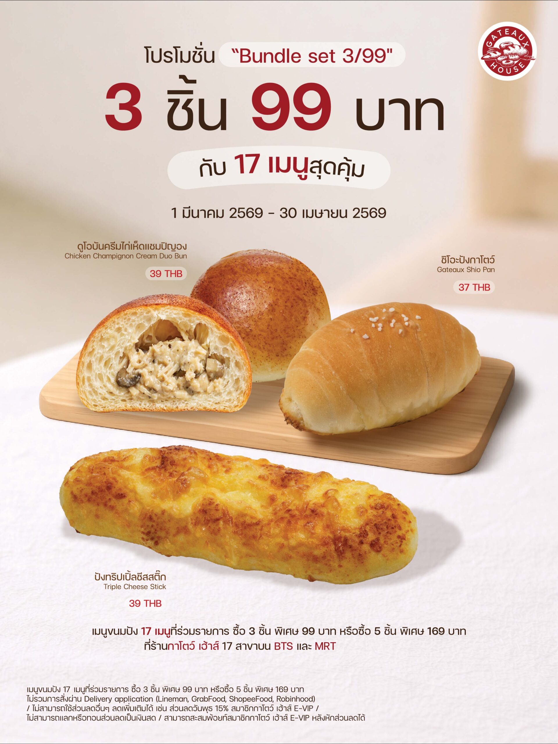 Bundle set 3 ชิ้น 99 บาท ระยะเวลาโปรโมชั่น ตั้งแต่วันที่ 1 มีนาคม 2569 – 30 เมษายน 2569