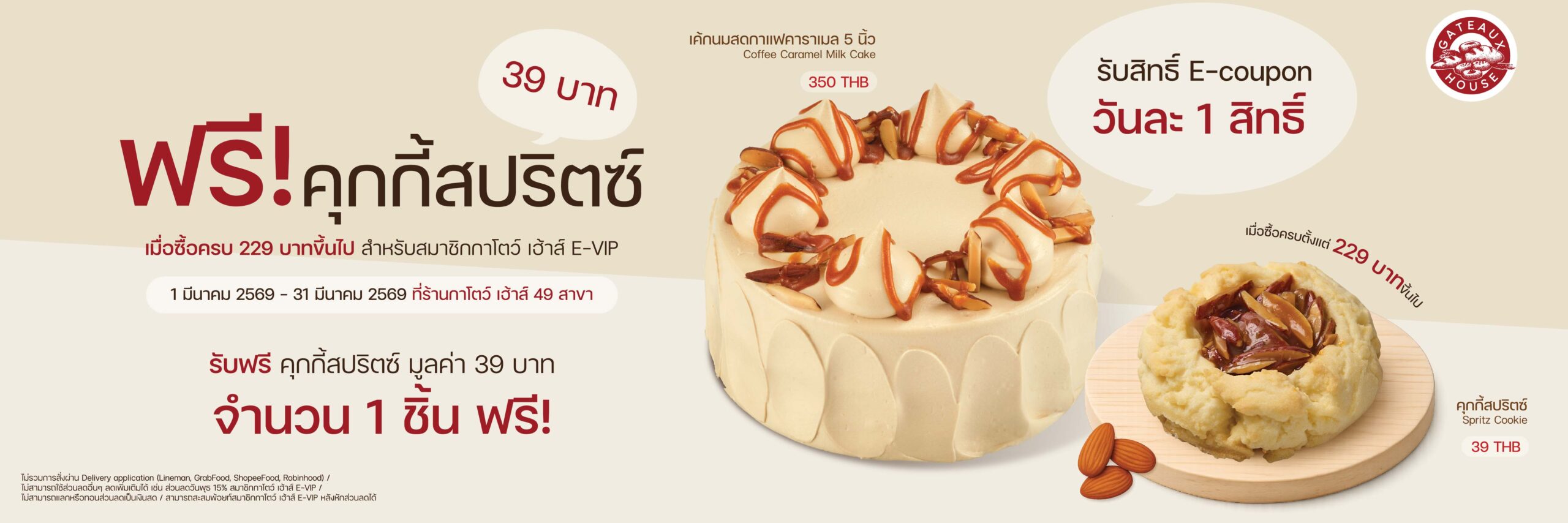 ซื้อครบ 229 บาทขึ้นไป รับฟรี คุกกี้สปริตซ์ 39 บาท 1 ชิ้น ตั้งแต่วันที่ 1 มีนาคม 2569 – 31 มีนาคม 256…